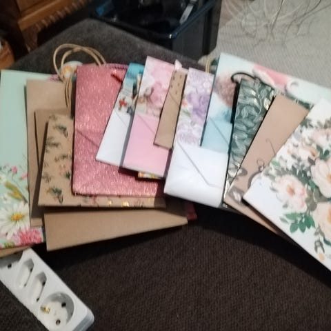 Myydään yhteensä 35 kappaletta itse tehtyjä lahjapusseja.
