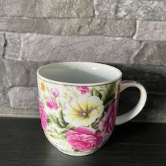 Kuusi käsin maalattua kukkamukia, kaksi samanlaista kutakin kukkaa. Uniikit. Ehyet ja siistit, ei käytön jälkiä.
