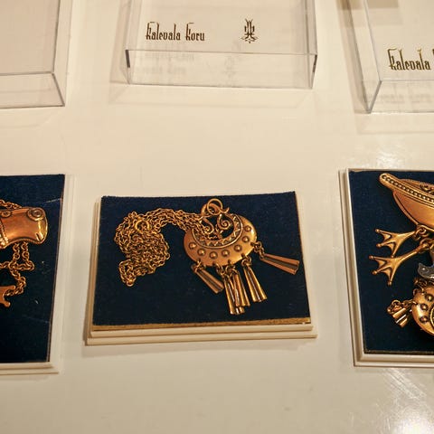 Käyttämättömät kalevala vintage korut pronsssia: Halikon juhlakääty 400 €, Helinä kaulakoru 50 €, Hirvenpää käsikoru 35 €. Kaikki yhdessä ostettuna 460 €.
