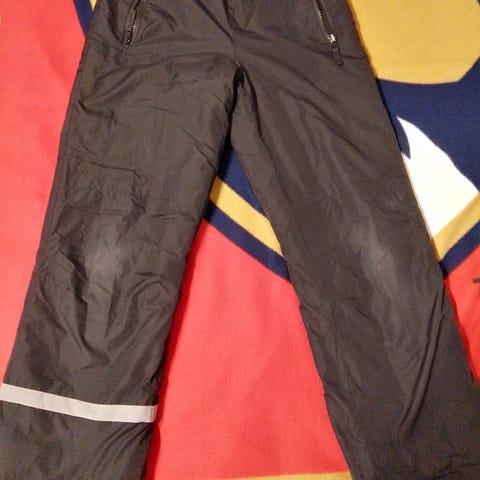 Toppahousut joissa kulumaa ja paljon pidetyt. Voin antaa nämä toisen ulkovaate ostoksen yhteydessä esim. Pakkaskeleille hyvät vielä. Vesikeleille ei ehkä enää.