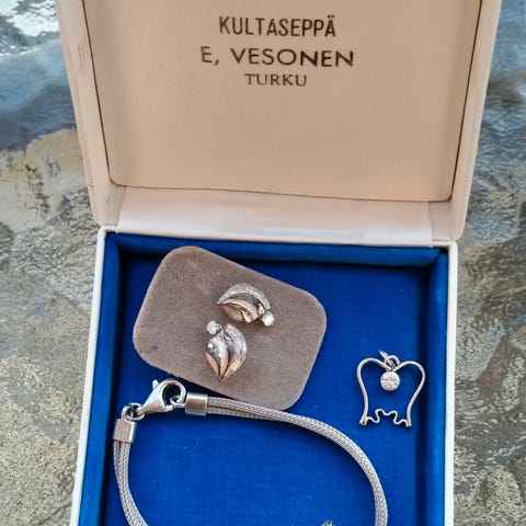 Erilaisia ja eri hintaisia hopeakoruja. (kaikissa merkintä, osa vailla kiillotusta)