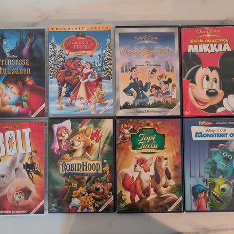 Myynnissä useita Disneyn dvd-levyjä. Osa harvinaisempia klassikkoelokuvia.