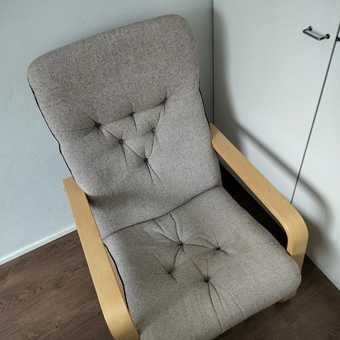 Ryhdikäs, kankainen ja selkäpuolelta viilutettu toimiston tyylikaluste. Kysy mittoja tarkemmin:)
