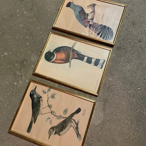 2 kpl lintuaiheisia tauluja koko n. 30x45 cm.
