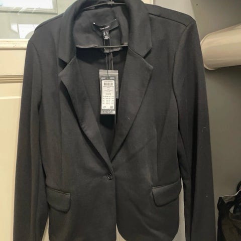 Ruskea, puolipitkä, uusi, käyttämätön bleiseri. Ruskeaa tekonahkaa. Kokomerkintä M, mutta vastaa enemmänkin L-kokoa tai nroa 40 tai 42. Eli itselle liian isoksi todettu. Oikea hinta oli 60 e.