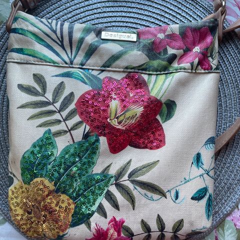 Desigualin upea laukku, joka uudenveroinen. Laukussa erilaisent painatukset molemmin puolin. Laukku laajennettavissa sivuilla olevilla avattavilla vetoketjulla. Sisällä vetoketjullinen sivutasku.