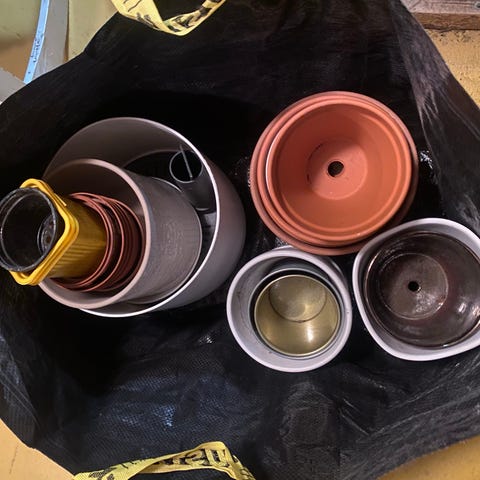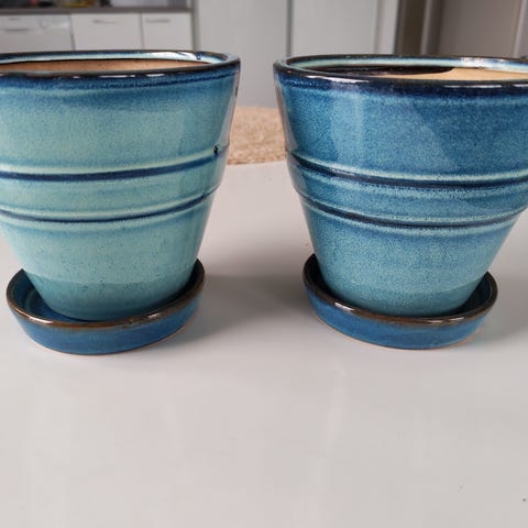 pienet saviruukut kork.5cmx5,5cm, hinta 9kpl=7e+pk(löytyy 2x) ja isommat kor.10cmx11cm(löytyy 4kpl) 2,30e/kpl+pk sekä lautaset 1e/kpl(löytyy 3kpl). Juankoski