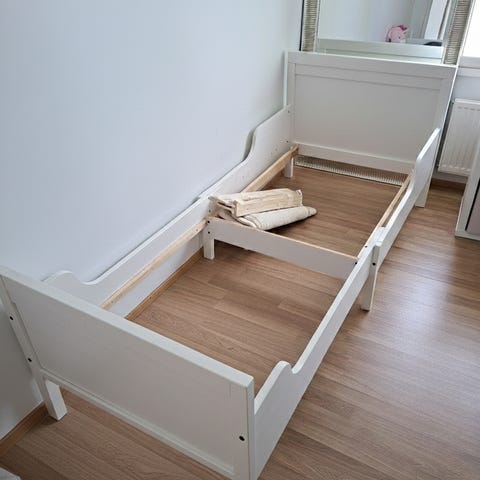 Hyvä sänky, jonka pituutta voi säätää. Kulunut, mutta toimiva.