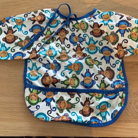 Hyväkuntoinen silikoninen ruokalappu taskulla.