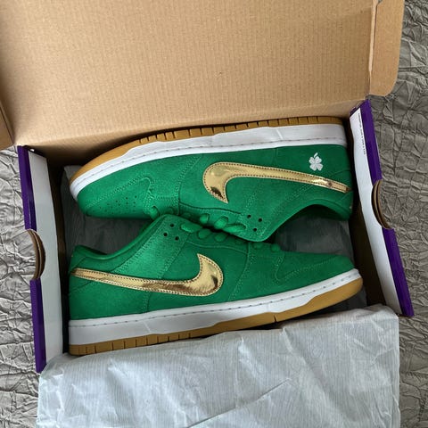 Myynnissä pari Nike Dunk low ”Michigan” kenkiä. Kengät ovat kokoa 42.5, kerran käytetyt ja uutta vastaavassa kunnossa. Laatikko ei ole alkuperäinen, mutta toisista Dunk kengistä vastaavanlainen. Alkuperäiset nauhat mukaan.