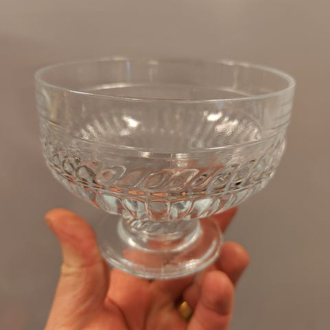 Riihimäen lasin Olli jälkiruokamalja 1970-luvulta,9 kpl. Ei ole säröjä eikä paloja pois. Kork.6.5cm ja halkaisija 10cm.Myydään mielellään kaikki yhdessä.30euroa