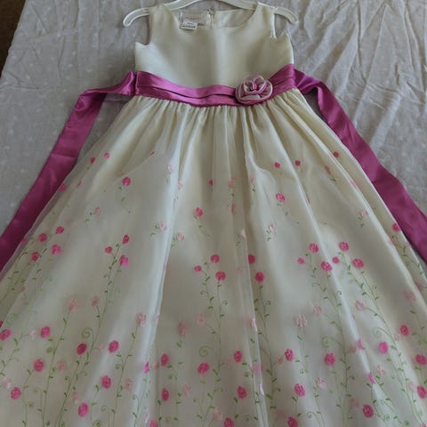 Myynnissä hyväkuntoinen ja siisti Kinderit-merkkinen juhlamekko, koko 128cm.