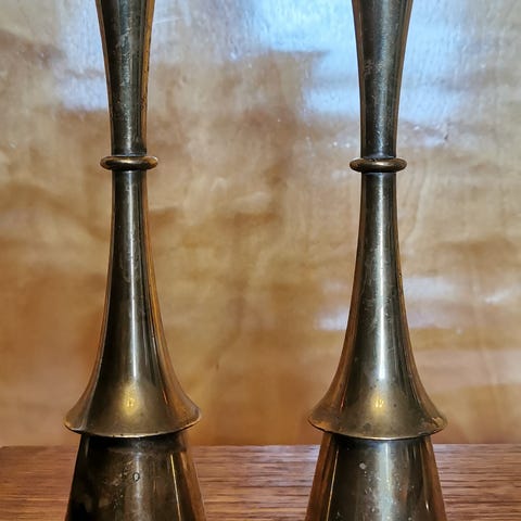 2x pienet (Kork. 6cm), mutta painavat kynttilänjalat. Jens Quistgaard, Dansk. 60-luvulta. Hopeoidut. Nouto tai postitus. #Modern#Danish#Design#