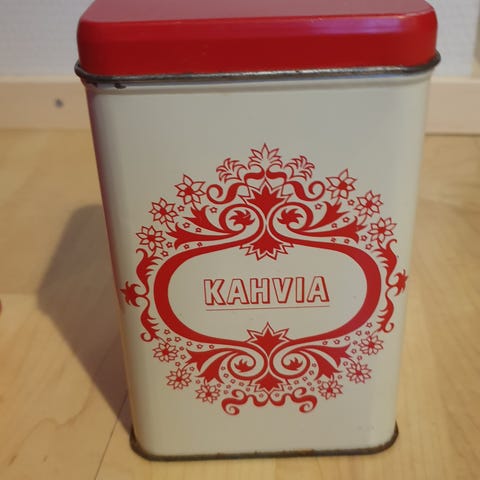 Vanha peltipurkki Kenia Oy. Mocca erikois-sekoitus. Purkki on vuodelta 1975. Iän tuomaa kulumaa ja jälkeä.