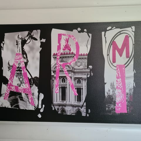Myytävänä kehystetty työ taiteilijalta Graciela Rodo Boulanger. Taulu on nimeltään Holiday on Wheels. Taulu on tyylikkäässä alumiinikehyksessä, jonka koko on lev. 70,5cm ja kork. 72,5cm. Hinta 35e.