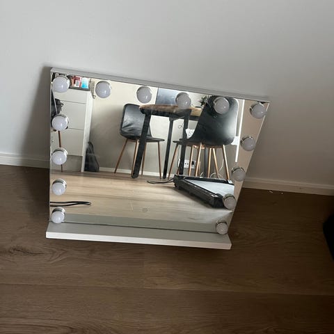 Tyylikäs kolmejälkainen kampaus-meikki peilipöytä. Fööni teline. Lattialle kiinnitetään ruuvilla tai silikonilla.