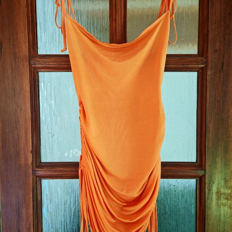 Noisy May oranssinpunainen mekko koossa XS, reilu malli. Siistikuntoinen. 95% puuvillaa, 5% elastaania.