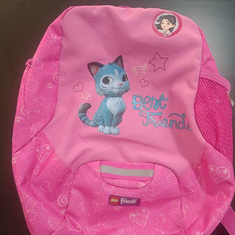 Sisältää sekä Lego Chima koulurepun, että pienemmän repun/jumppapussin. Kätevä ja tilava reppu jossa on paljon taskuja ja lokeroita. Kätevä avaimen tai bussilipun säilytyslenkki, jonka saa irti pikalukolla. Pohja on kovempaa muovia, joten kestää kulutusta ja kosteutta. Selkäosassa pehmusteet jotka suojaa selkää. Hieman pesun tarpeessa ja pientä käytönjälkeä, mutta muuten ok.