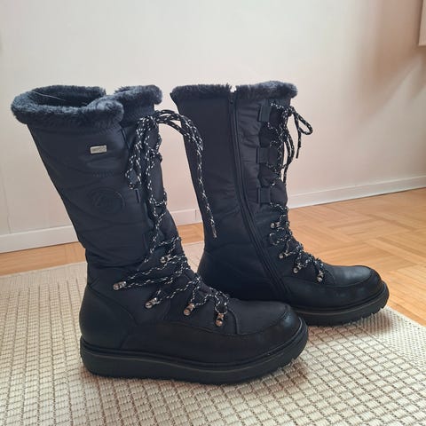 Uudet . Helposti puettavat tarrakiinnityksellä olevat talvikengät .Pitävä pohja. Lämmin karvavuori.