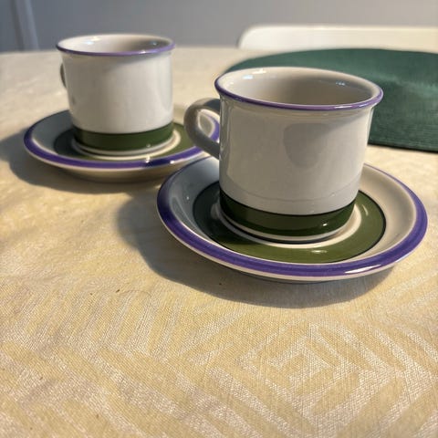 Todella hyvässä kunnossa, myydään mieluusti settinä 12 kpl muki& tassi sekä sokerikko ilman kantta yht. 120