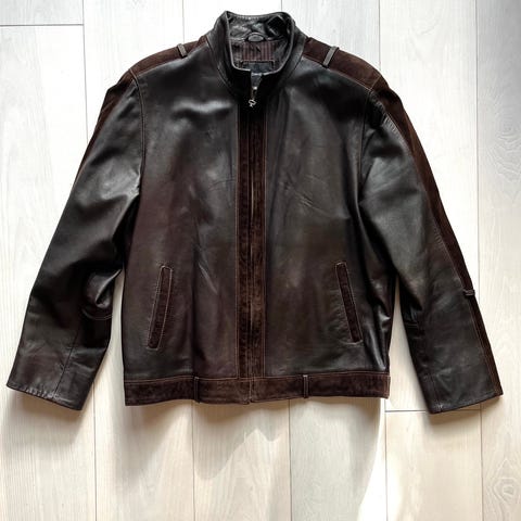 Retro nahkatakki. Top cun jenkkikartta vuoressa ja ehjä