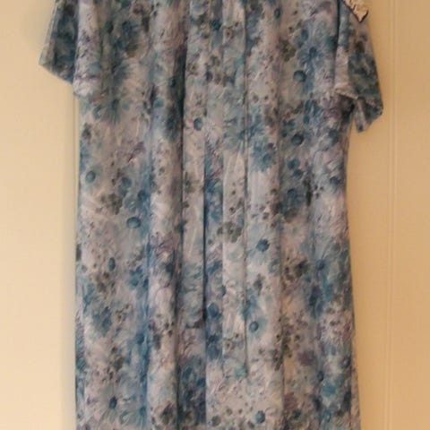 Suomalainen vintage (60-luvulta) kukkamekko tai yöpaita, pitsireuna kauluksessa ja hihoissa. Puuvilla/polyesteriä kauniisti laskeutuu. Puhdas ja hajuton.
