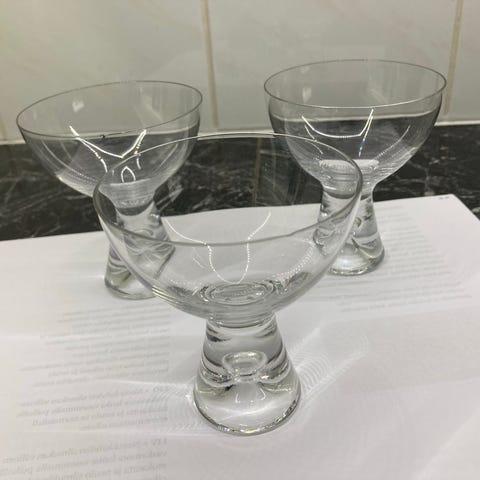 Harvinaiset Iittala Tapio cocktaillasit 14 cl. Iittalan valmistamien Tapio-cocktaillasien korkeus 96 mm ja suun halkaisija 83 mm. Alkuperäinen pakkaus mukana.