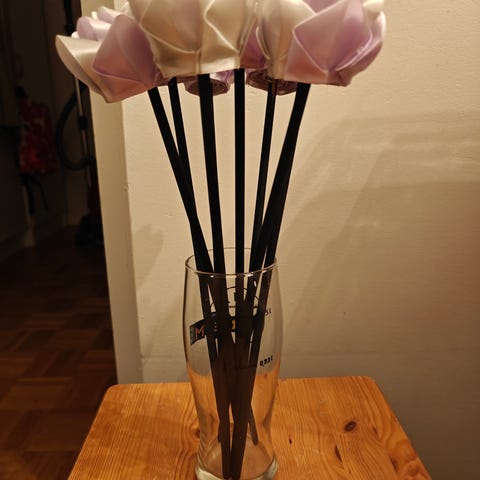 7 Ruusua , pitkävartiset 78cm, varsi taipuu tai voi katkaistakin,