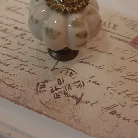 Ollut alunperin ilmeisesti valkoinen, mutta ajan saatossa kellertynyt. Kankaassa on muutama pistemäinen tahra. En ole yrittänyt pestä.