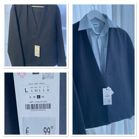 Miesten musta takki Zara Man tuote, romanttisen tyylin kirjonta ja napit,
