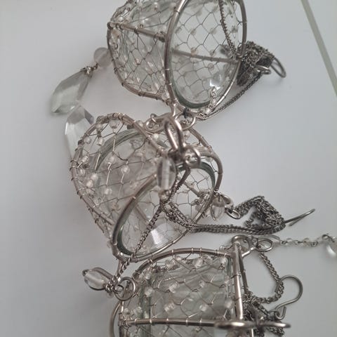 Lasinen jalallinen malja esim tuikulle korkeus n.25cm ja maljan yläreuna n. 8cm. Täysin ehjä.