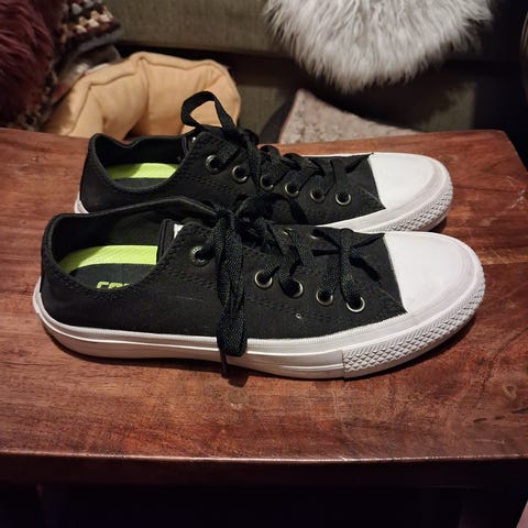 Oikean kengän reunassa, pikkuvarpaan kohdilla sauma rikki, suutarilla helposti korjattavissa.