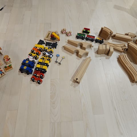 BRIO Puinen junarata- ja junasetti sisältää erilaisia puisia junaradan osia ja junavaunuja. Setti on väriltään pääasiassa punainen ja luonnonvärinen puu. Sopii lasten leikkeihin ja kehittää mielikuvitusta sekä motorisia taitoja.