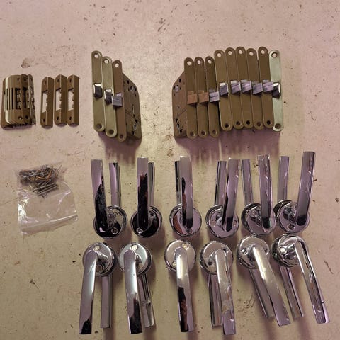 Välioven painikkeita 5e/kpl, wc vääntönupit 5e/kpl, peitekilpiä 2e/kpl