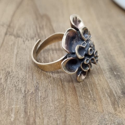 Pronssia, koko n. 20 mm, säädettävä. Muutamaan kertaan käytetty.