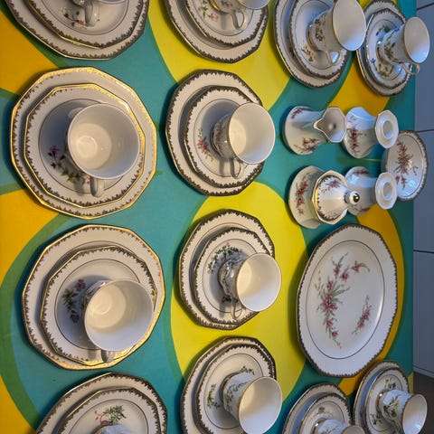 Todella hyväkuntoisia Svaneholm Flora Alpina 1530 astioita