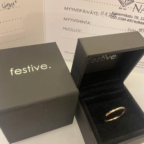 Myydään valkokultainen Festiven Jasmin sormus. Koko 16,5. Aitoustodistus löytyy. Ollut käytössä 2 vuotta. Oikein hyvässä kunnossa. Ei ole kaiverrettu.
