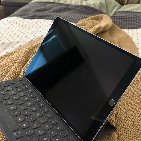 Kuvan Smart Keyboard kaupan päälle. Ei yhdistä iPadiin mutta toimii ainakin suojakuorena.