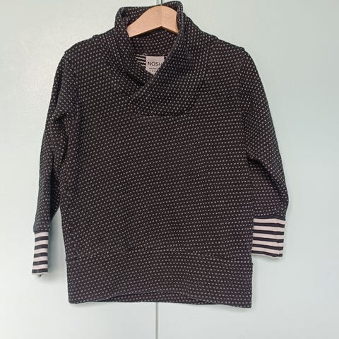 Nosh taskullinen kaksivärinen trikoopaita puuvillaa. 110/116 cm. 95% puuvillaa ja 5% elastaani.