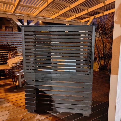 Pulverimaalattu valkoinen galvanoitu kokonaan metallinen suojakotelo ilmalämpöpumpun ulkoyksikölle. Saranoitu huoltoluukku kyljessä. Täysin käyttämätön avaamattomassa pakkauksessa. Voin myös lähettää.