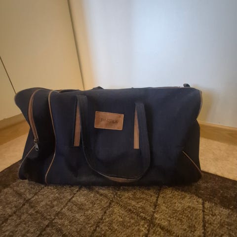 Turkoosi Newfeel, tukevaa kangasta kevytkassi. Päädyissä taskut.