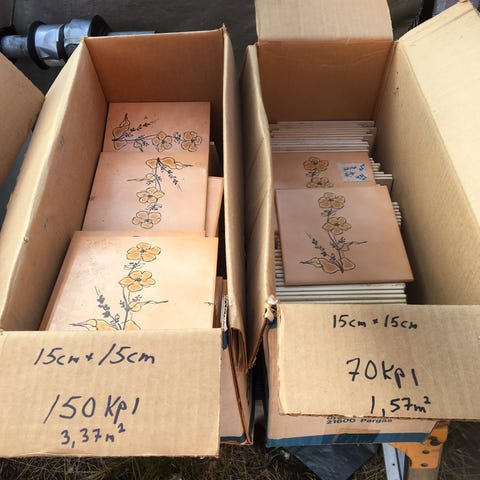 Seinäkaakelia koko 15cmx15cm noin 2,1m2