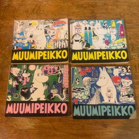 Hyväkuntoisia muumisarjiksia (paitsi kaikissa on nimi).