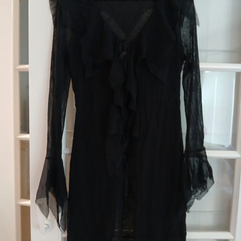Hyvässä kunnossa. Edessä mustia paljetteja. Napit edessä. Laput poistettu. Pituus 53. Kai-kai 45 (joustaa vähän).