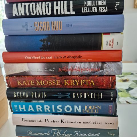 8 kpl kovakantisia kirjoja. Denise Robins: Anna sydämeni takaisin, Grace Metalious: Peyton Place, Dave Peltzer: Pimeän poika, Joan Collins: Tuhman tytön tarina, Arto Paasilinna: Isoisää etsimässä, Charles Webb: Miehuuskoe, Ken Follett: Kolmas kaksonen, Emily Bronte: Humiseva harju. Myydään joko yhdessä tai erikseen. 3€/kpl tai kaikki yhteishintaan 20€. Vain nouto