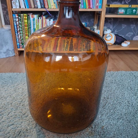Johannislundin lasitehtaan valmistama pullo, pohjassa J -merkintä.