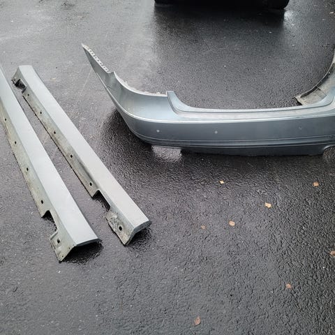 W212 4-maticista irroitetut etutolpat. Kuskin puoleinen pussi vuotaa, vänkärin ehyt.
