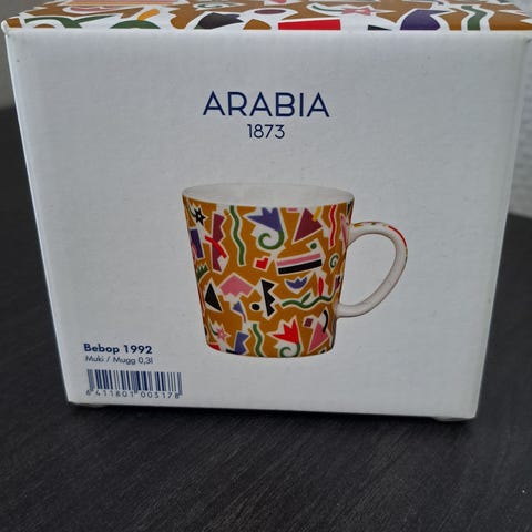 Kotimaisen yhtye, perustettu 1964, kuvassa. Gugi Kokljuschkin, Harri Saksala, Eero Lupari, Heimo Holopainen, Kisu Jernström ja Poku Tarkkonen, mukin korkeus 9,5 cm ja halkaisija 8 cm, ehjä