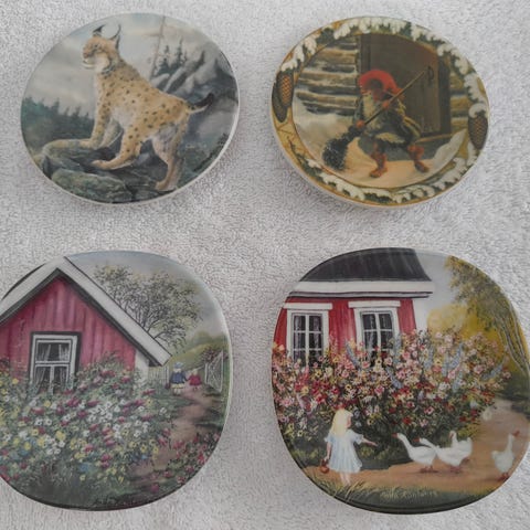 Myydään Arabian seinälautasia.hinnat lueteltu.postikulut ostajalle. Tonttu ja karhu:28 euroa,tonttu ja luuta:25 euroa,tonttu ja kahvimylly:28 euroa,enkeli ja nukke 48euroa, kotikylä talvella:20 euroa,Suomalaiset jäämeren rannalla:25 euroa,anna meille enkeleitä: 48 euroa.