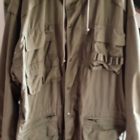 Miesten Jokamies ulkoilutakki koko 58.Väri vihreämpi kuin kuvissa.Takissa vetoketju ja tarrakiinnitys.Vyötäröllä ja helmassa kiristys nyörit.Piilohuppu tarra kiinnityksellä.Vetoketjullinen povitasku.Edessä sivutaskut ja 2 rintataskua vetoketjuilla.